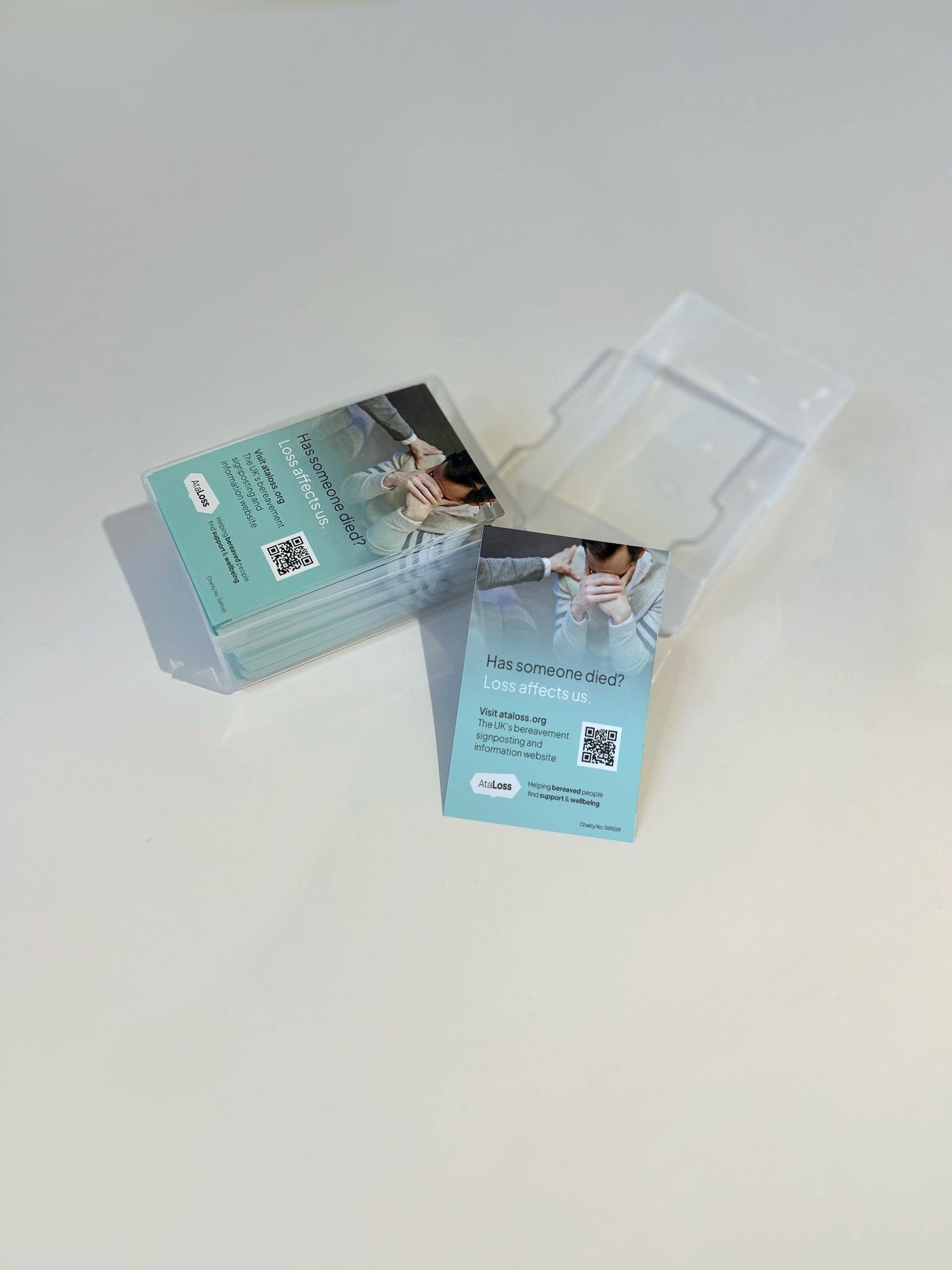 Shop › Handy Perspex Box For Signposting Cards Image 1 of 2 Image 2 of 2 Handy Perspex Box For Signposting Cards £0.50 A useful solution for neatly displaying your AtaLoss Signposting Cards. Add To Cart Added! A useful solution for neatly displaying your AtaLoss Signposting Cards.