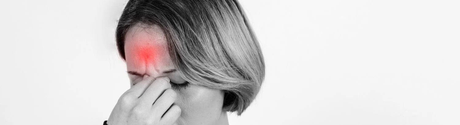 Woman with head pain.